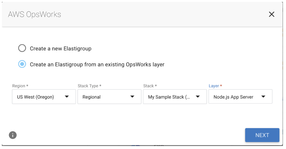 - For regional OpsWorks stacks, the Elastigroup must be in the same region and VPC as the stack.